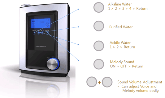 Change electrode polarity to opposite direction every time after use, thereby preventing the plating(coating) phenomenon at electrolytic cell in advance(alkaline water comes out upper dispenser always by use of flow direction auto-change system if electrode polarity changed).