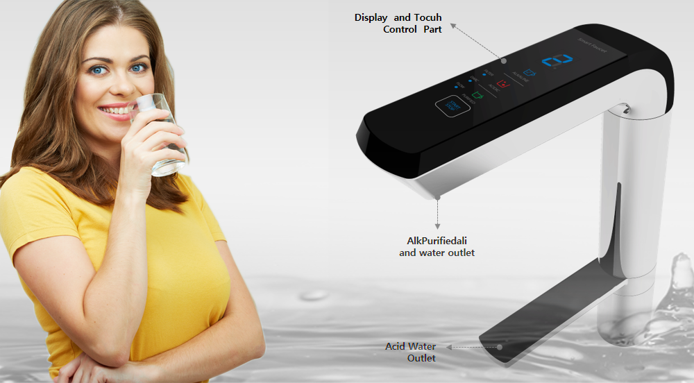 | Alkali water level, Acid water level and purified water as well as simple water outlets can be setting at faucet on the sink |
